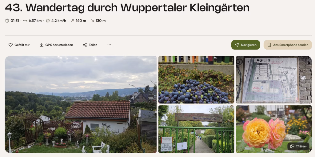 Am Samstag, 27. September 2025, startet um 10 Uhr am KGV Hohenhagen eine ca. 9 km lange Wanderung durch 13 Kleingartenanlagen Wuppertals. Unterwegs bieten viele teilnehmende Kleingartenvereine Essen und Trinken an. Am Ziel wartet eine Schlussveranstaltung mit Tombola im KGV Kleefeld – verlost wird unter allen Anwesenden mit vollständig gestempelten Pässen.